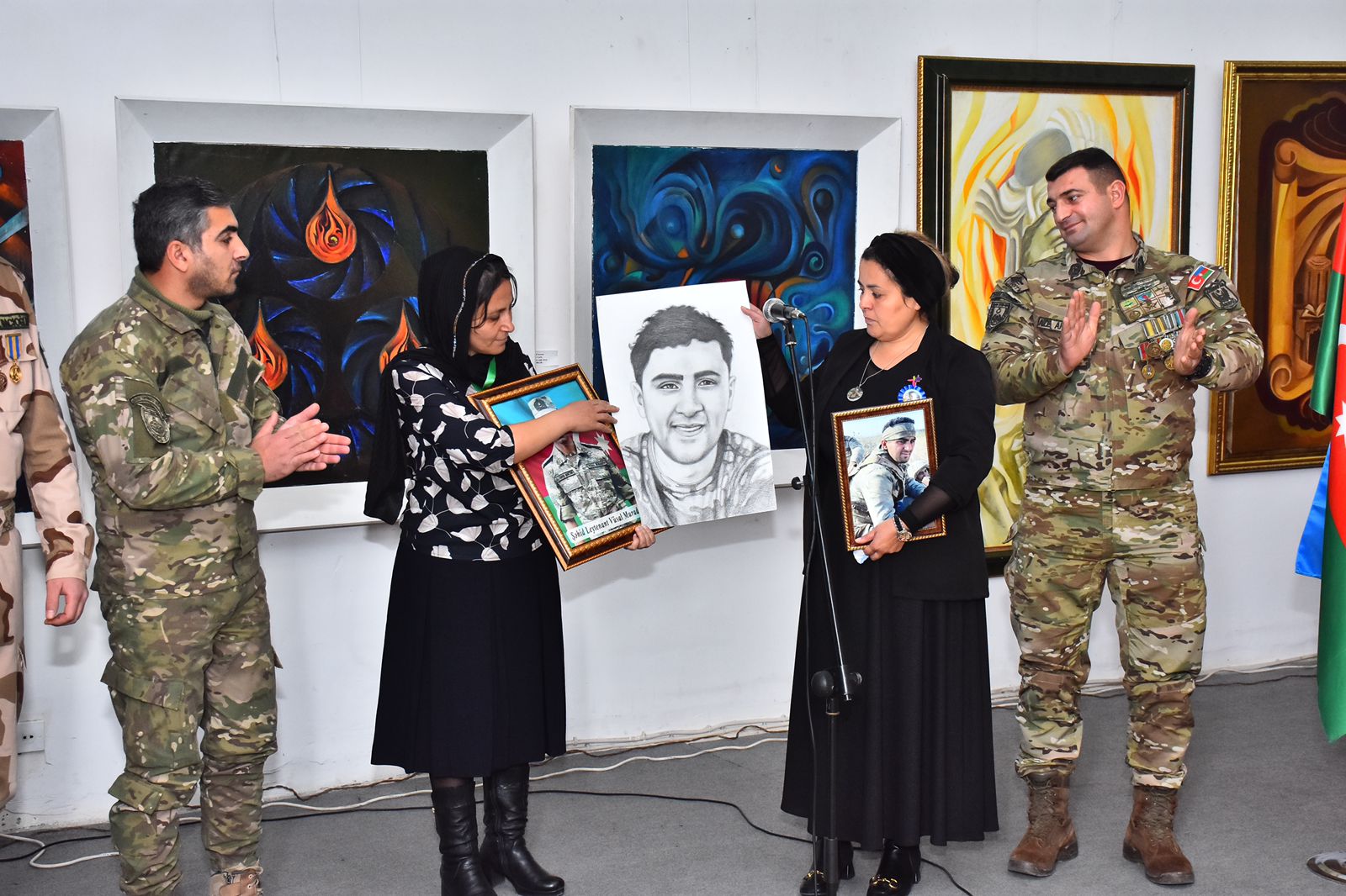 Öncə qonaqlar şəhərimizin peşəkar rəssamlarının və məktəblilərinin “Zəfər Günü”nə həsr etdikləri 40-a yaxın əsərlər ilə tanış olublar. Sərgidə rəssam Tofiq Əhmədovun, İntiqam Cəfərovun, xalçaçı-rəssam Fazil Abbasquluzadənin, modelyer-rəssam Günel Hüseynovanın və Sumqayıt məktəblilərinin əsərləri böyük maraqla qarşılanıb.