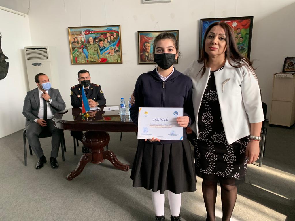 Sonda qalereyanın direktoru Ellada Həsənova tədbir iştirakçılarına təşəkkürünü bildirmiş və sərgidə iştirak edən məktəbliləri sertifikatla təltif etmişdir.