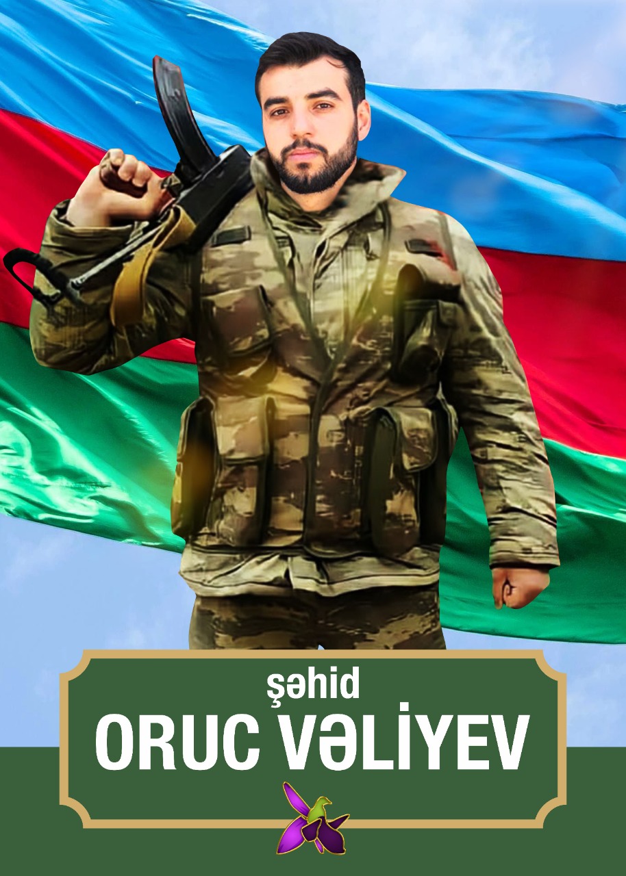Digər şəhidimiz Oruc Ramiz oğlu Vəliyev 13 iyul 1998-ci ildə Gəncə şəhərində doğulub. 2001-ci ildə Gəncə şəhər Ə.Cavad adına 2 nömrəli tam orta məktəbdə təhsilə başlayıb. 2012-ci ildə Azərbaycan Silahlı Qüvvələrinin Quru Qoşunlarında xidmət edib.