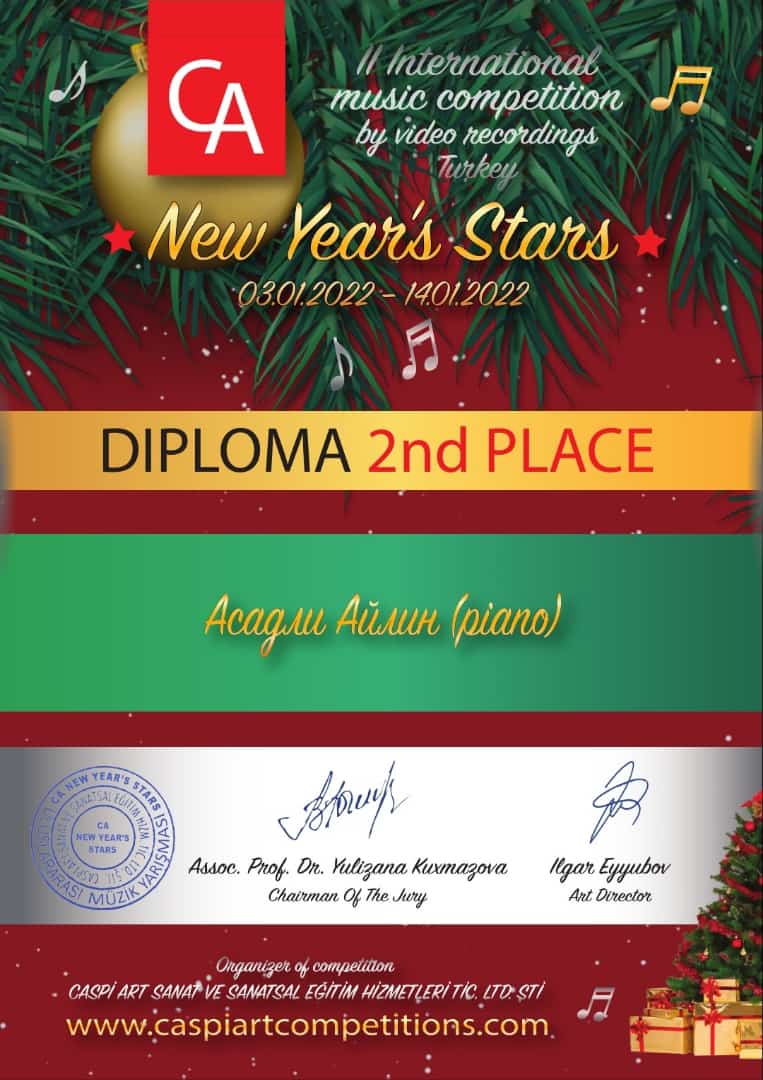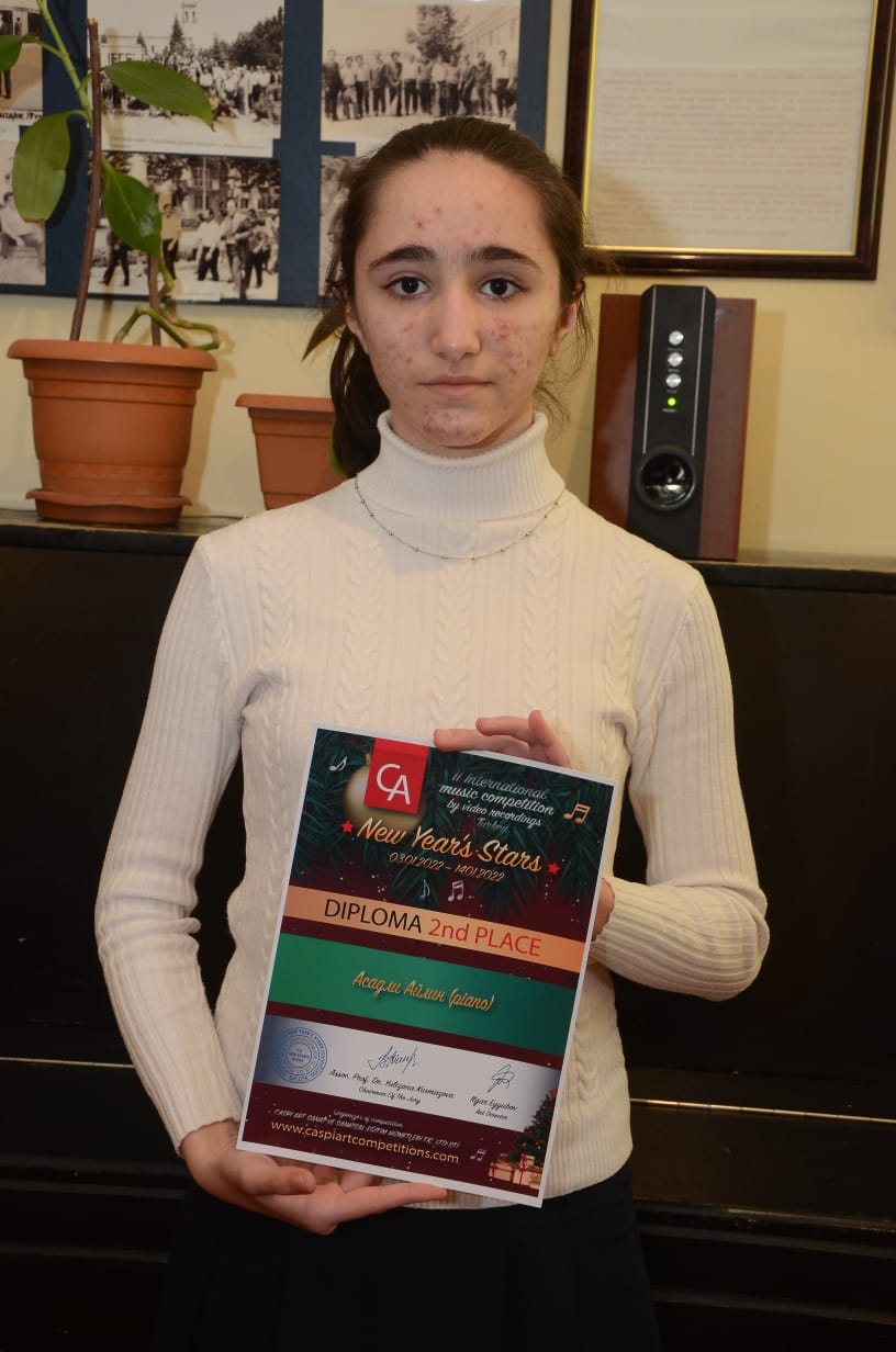 3-14 yanvar tarixlərində Sumqayıt Regional Mədəniyyət İdarəsinə tabe olan Qubadlı rayon Mahmudlu kənd F.Hüseynov adına musiqi məktəbinin 6-cı sinif şagirdi Aylin Asəf qızı Əsədli Türkiyyədə onlayn formatda keçirilən “New years starts” 2-ci Beynəlxalq müsabiqədə fortepiano ixtisası üzrə 2-ci yerə layiq görülüb.