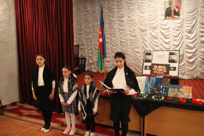 Sonda Mikayıl Müşfiq adına Giləzi qəsəbə tam orta məktəbinin və Giləzi qəsəbə folklor klubunun birgə hazırladığı faciə qurbanlarının xatirəsinə həsr olunan ədəbi-bədii kompozisiya nümayiş etdirilib, şagirdlərin ifasında şeirlər səsləndirilib.
