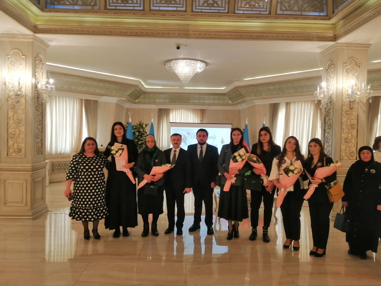 Azərbaycan himninin səsləndirilməsi ilə başlayan tədbirdə Ulu Öndər Heydər Əliyevin və vətənimizin bütövlüyü uğrunda canından keçən bütün şəhidlərimizin əziz xatirəsi bir dəqiqəlik sükutla yad edilib. Azərbaycan qadınının ictimai həyatına və fəaliyyətinə həsr olunan videoçarx nümayiş edildikdən sonra çıxış edən Abşeron Rayon İcra Hakimiyyətinin başçısı Abdin Fərzəliyev başda Azərbaycanın Birinci Vitse-prezidenti, YUNESKO-nun və İSESKO-nun xoşməramlı səfiri Mehriban xanım Əliyeva olmaqla şəhid analarını, həyat yoldaşlarını və respublikamızın bütün xanımlarını 8 Mart - Beynəlxalq Qadınlar Günü münasibətilə təbrik edib.