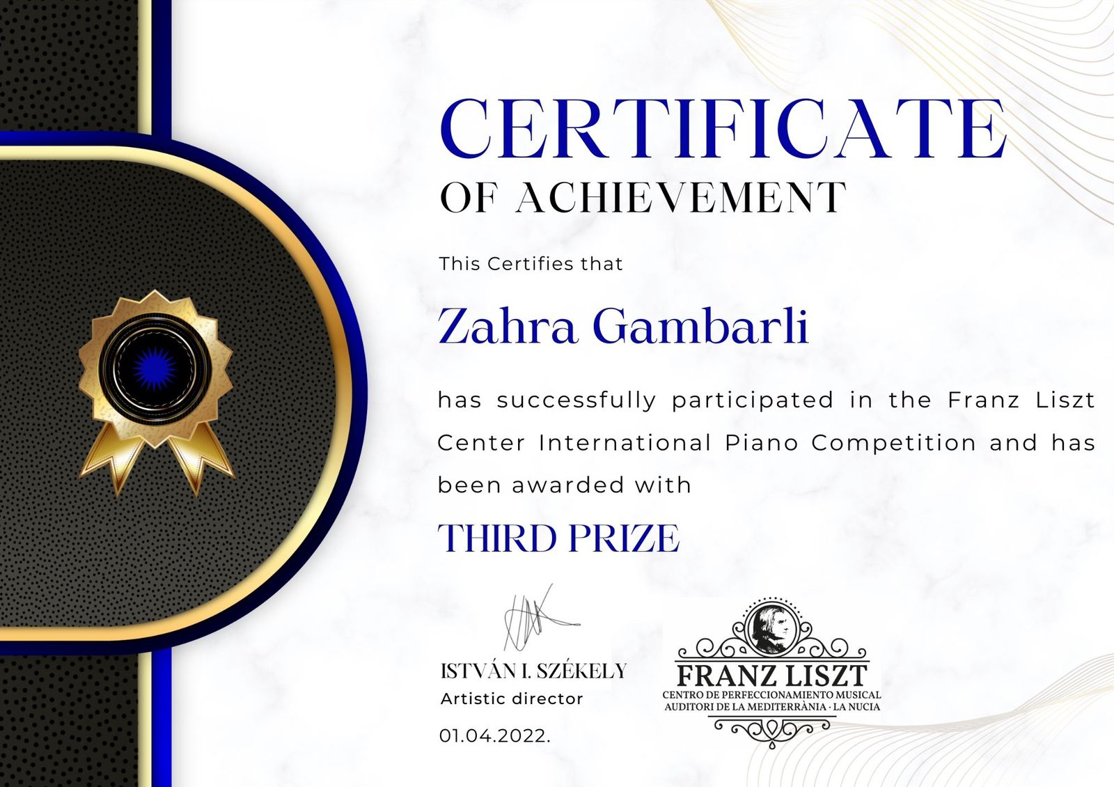 Müsabiqədə fortepiano şöbəsinin 1-ci sinif şagirdi Zəhra Əsəd qızı Qənbərli 3-cü yerə layiq görülərək sertifikatla təltif edilib.