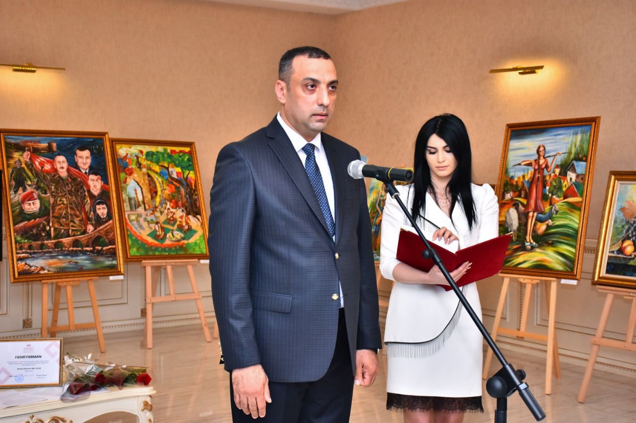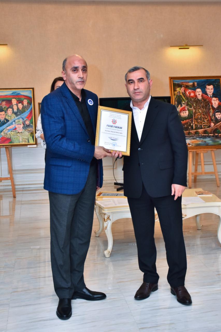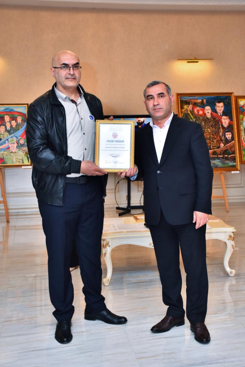 Sonda Mədəniyyət İşçiləri Həmkarlar İttifaqı Sumqayıt şəhər Komitəsinin sədri Şahin Şəfiyev rəssamlara Fəxri Fərmanlar təqdim edib.