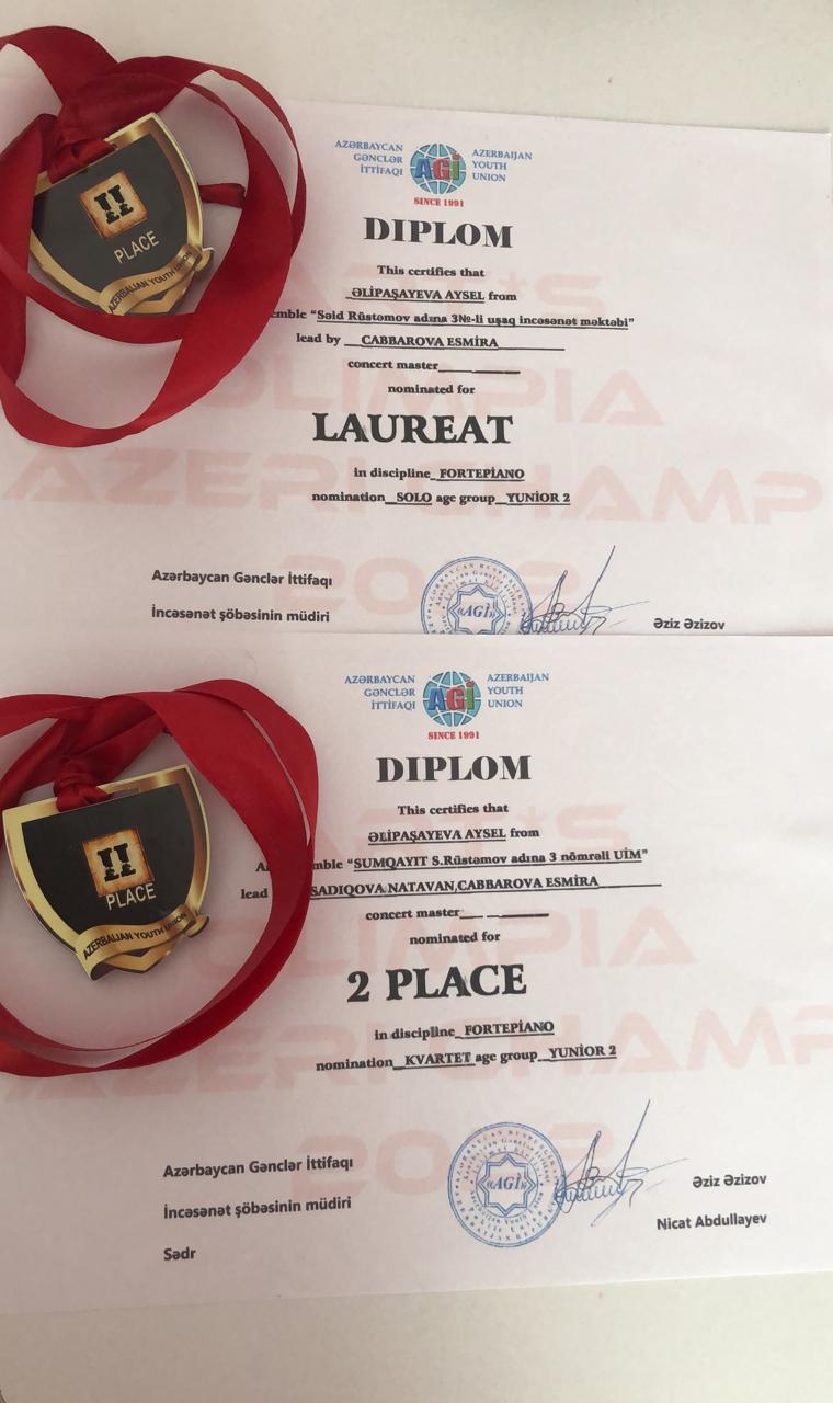 Sumqayıt Regional Mədəniyyət İdarəsinə tabe olan Səid Rüstəmov adına 3 nömrəli uşaq incəsənət məktəbinin şagirdləri Bakı şəhərində keçirilən İncəsənət Olimpiadasında iştirak ediblər. Olimpiadada fortepiano şöbəsinin 1-ci sinif şagirdi Zəhra Qənbərli və 5-ci sinif şagirdi Fidan Sultanova I yerə, 6-cı sinif şagirdi Aysel Əlipaşayeva II yerə layiq görülərək medal və diplomla mükafatlandırılıblar. Şagirdləri olimpiadaya müəllimləri Esmira Cabbarova və Simnarə Şərifova hazırlayıb.