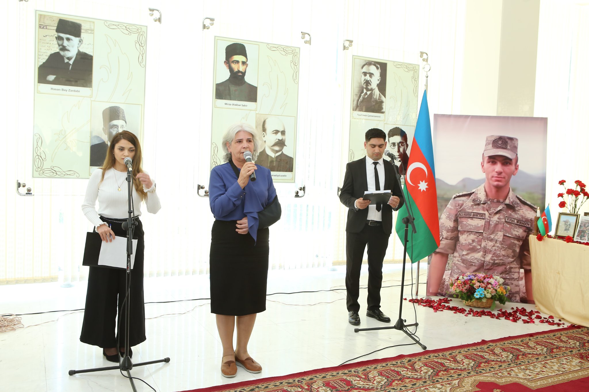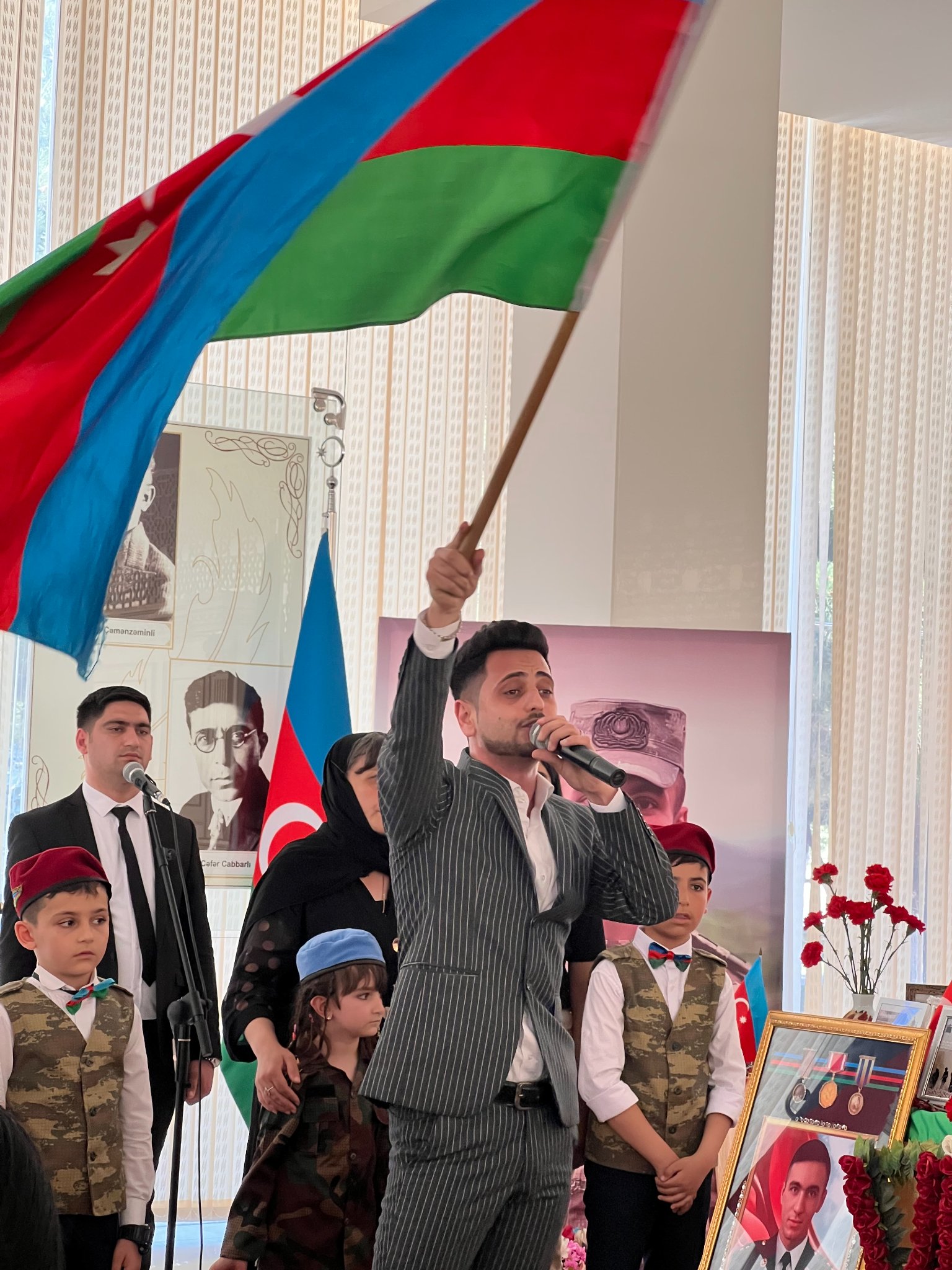 Tədbirdə şəhidə həsr olunan şeirlər səsləndirilib, müğənnilərdən Əvəz Səlimov, Zaur Yusifli, Əli Əzizoğlunun ifasında vətənpərvər ruhlu musiqilər ifa olunub. Daha sonra “Sumqayıt” rəqs qrupu isə “Xarıbülbül” rəqsi ilə çıxış edib.