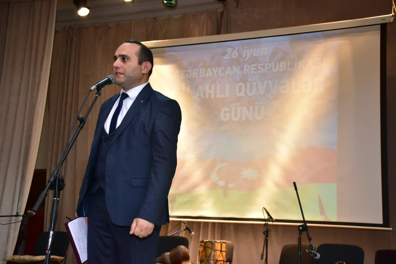 Sumqayıt Regional Mədəniyyət İdarəsinə tabe olan Nəriman Nərimanov adına Mədəniyyət Mərkəzində 26 iyun Silahlı Qüvvələr Gününə həsr olunan “Ordum varsa, yurdum var!” adlı musiqili gecə keçirilib. Tədbirdə rəsm kursu üzvlərinin mövzu ilə bağlı rəsm əsərləri sərgilənib. Gecədə Qələbəmizi bizə yaşadan hərbiçilərimiz, şəhidlərimizin ailə üzvləri, qazilərimiz, yaralılarımızın həyatlarını canları bahasına xilas edən həkimlərimiz iştirak ediblər. Azərbaycan Respublikasının Dövlət Himni ilə açıq elan edilən tədbir Ali Baş Komandanımız İlham Əliyevin möhtəşəm Zəfər müjdələrini tərənnüm edən videoçarxla davam etdirilib. Tədbirdə Sumqayıt Şəhər İcra Hakimiyyəti Vətən Müharibəsi İştirakçıları və Şəhid Ailələri İşinin Təşkili şöbəsinin müdiri Tərlan Hacızadə I və II Qarabağ savaşı zamanı Silahlı Qüvvələrimizin rolundan, şəhidlərimizin qəhrəmanlığından və qazilərimizin şücaətindən ətraflı söhbət açıb.