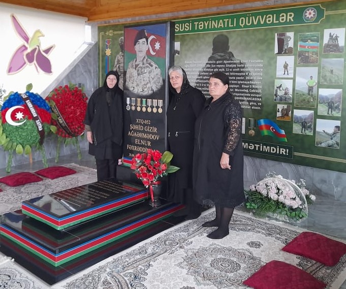 Sumqayıt Regional Mədəniyyət İdarəsinə tabeli Xızı rayon Mərkəzləşdirilmiş Kitabxana Sisteminin əməkdaşları Vətən müharibəsində qəhrəmancasına şəhid olan Xüsusi Təyinatlı Qüvvələrin kiçik giziri Elnur Fəxrəddin oğlu Ağaəhmədovun ailəsini ziyarət ediblər. Şəhid Elnurun foto və əşyalarına, hərbi xidməti zamanı qazanılan uğurlarını əks etdirən fəxri fərmanlarına, medallarına baxılıb, onun döyüş yolu haqqında söhbətlər aparılıb. E.Ağaəhmədov 2020-ci il sentyabrın 27-də Azərbaycan Silahlı qüvvələri tərəfindən işğal altında olan ərazilərin azad edilməsi və Azərbaycanın ərazi bütövlüyünün bərpa olunması üçün başlanan Vətən mharibəsi zamanı Füzulinin, Cəbrayılın və Xocavəndin azadlığı uğrunda gedən döyüşlərdə iştirak edib. Elnur Ağaəhmədov oktyabrın 26-da Xocavənd döyüşləri zamanı Qırmızı Bazar istiqamətində qəhrəmancasına şəhid olub. Qəhrəmanımız Azərbaycan Respublikasının Prezidenti cənab İlham Əliyevin Sərəncamına əsasən torpaqlarımızın işğaldan azad olunması zamanı döyüş tapşırıqlarını yerinə yetirərkən göstərdiyi igidliyə, mərdliyə və cəsarətə görə ölümündən sonra “Vətən uğrunda”, “Cəbrayılın azad olunmasına görə”, “Xocavəndin azad olunmasına görə”, “Kəlbəcərin azad olunmasına görə”, “İgidliyə görə” medalları və “Azərbaycan Bayrağı” ordeni ilə təltif olunub. Sonda şəhid Elnur Fəxrəddin oğlu Ağaəhmədovun oğlunun məzarı ziyarət edilib, onun ruhuna dualar oxunub.