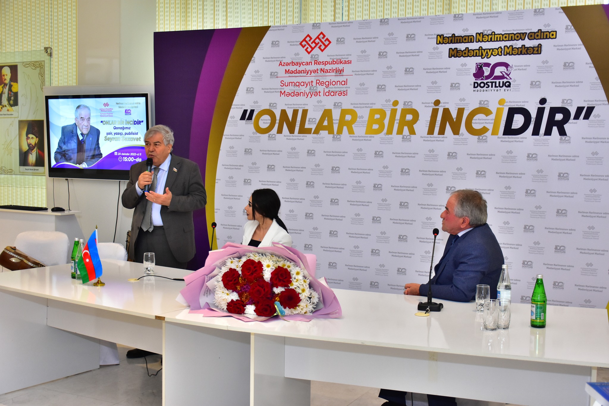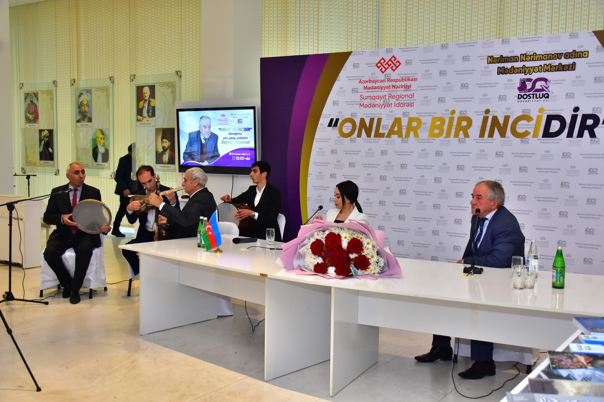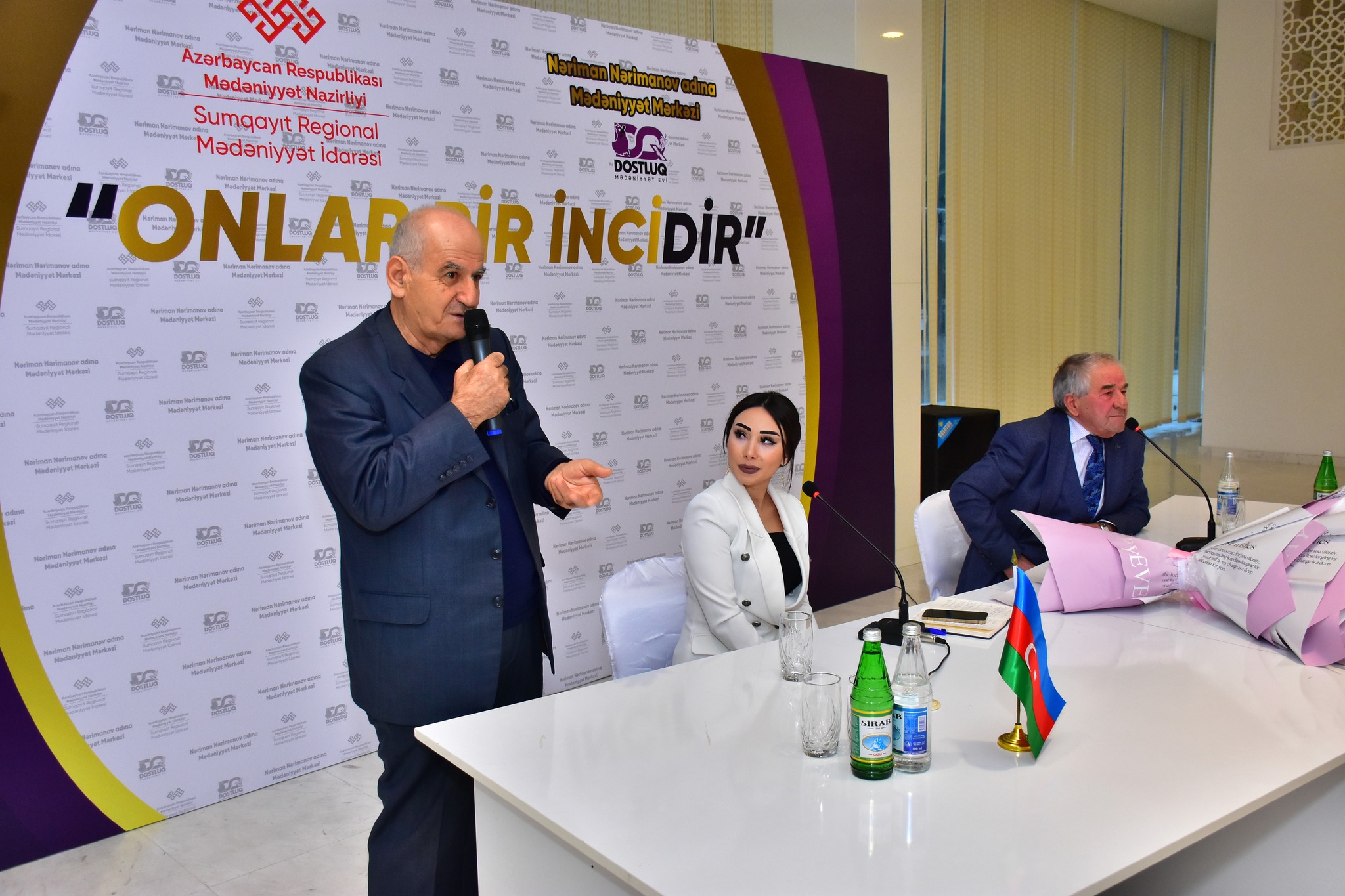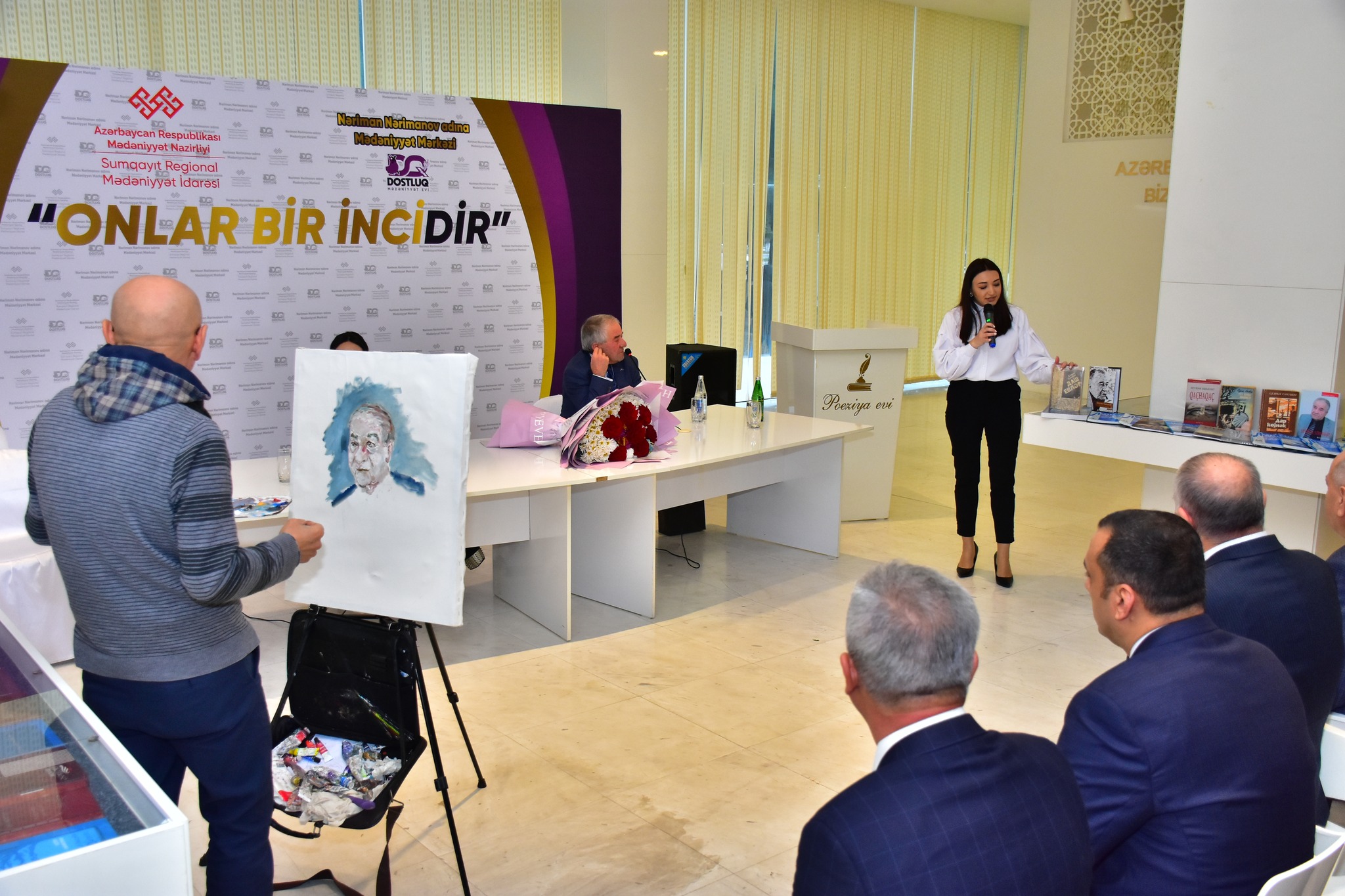 20 dekabr 2022-ci il tarixində Sumqayıt şəhər Poeziya evində Sumqayıt Regional Mədəniyyət İdarəsinin dəstəyi ilə, idarəyə tabeli N.Nərimanov adına Mədəniyyət Mərkəzinin “Dostluq” mədəniyyət evinin hazırladığı “Onlar bir incidir” adlı layihə baş tutdu. Tədbiri giriş sözü ilə açıq elan edən Sumqayıt Regional Mədəniyyət İdarəsinin rəisi Rəşad Əliyev qonaqları salamlayaraq, Vətənimizin ərazi bütövlüyü uğrunda canından keçən şəhidlərimizin ruhunu bir dəqiqəlik sükutla yad etdilər. R.Əliyev idarənin hazırladığı layihələrdən söz açıb, bugünki layihənin qonağını salamlayıb, ona gül dəstələri və xüsusi hazırlanan hədiyyəni təqdim edib.