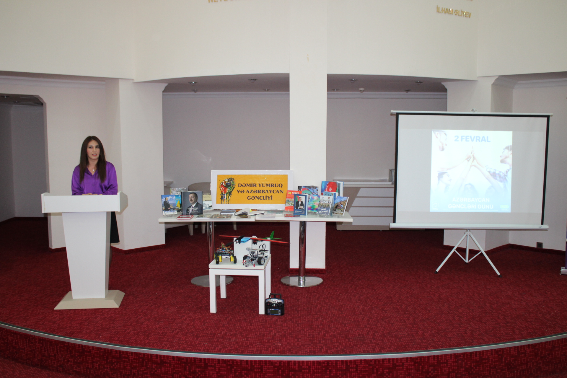Sumqayıt Regional Mədəniyyət İdarəsinə tabeli Gənclər Kitabxanasının Sumqayıt şəhər Gənclər evinin əməkdaşları ilə birgə Sumqayıt MKS-in “Bizi tanıdanları tanıdaq” layihəsi əsasında və “2 fevral – Gənclər günü”nə həsr olunan “Dəmir yumruq və Azərbaycan gəncliyi” adlı tədbir keçirilib. Tədbirin əvvəlində vətənimizin ərazi bütövlüyü uğrunda canından keçən şəhidlərimizin xatirəsi bir dəqiqəlik sükutla yad edilib. Aparıcı Gənclər Kitabxanasının müdir vəzifəsini m.i.e. Leyla Mahmudova bu günün yaranma tarixindən danışaraq gənclərə həmişə böyük diqqət və qayğı ilə yanaşan, gənclər siyasətinin ümummilli lider Heydər Əliyevin adı ilə bağlı olduğunu xüsusi vurğulayaraq “Dəmir yumruq və Azərbaycan gəncliyi adlı kitab sərgisi haqqında tədbir iştirakçılarına məlumat verib. Sonra ulu öndər Heydər Əliyevin və onun layiqli davamçısı cənab Prezident İlham Əliyevin gənclərlə olan görüşlərindən, çıxışlarından bəhs edən videoçarx izlənilib.