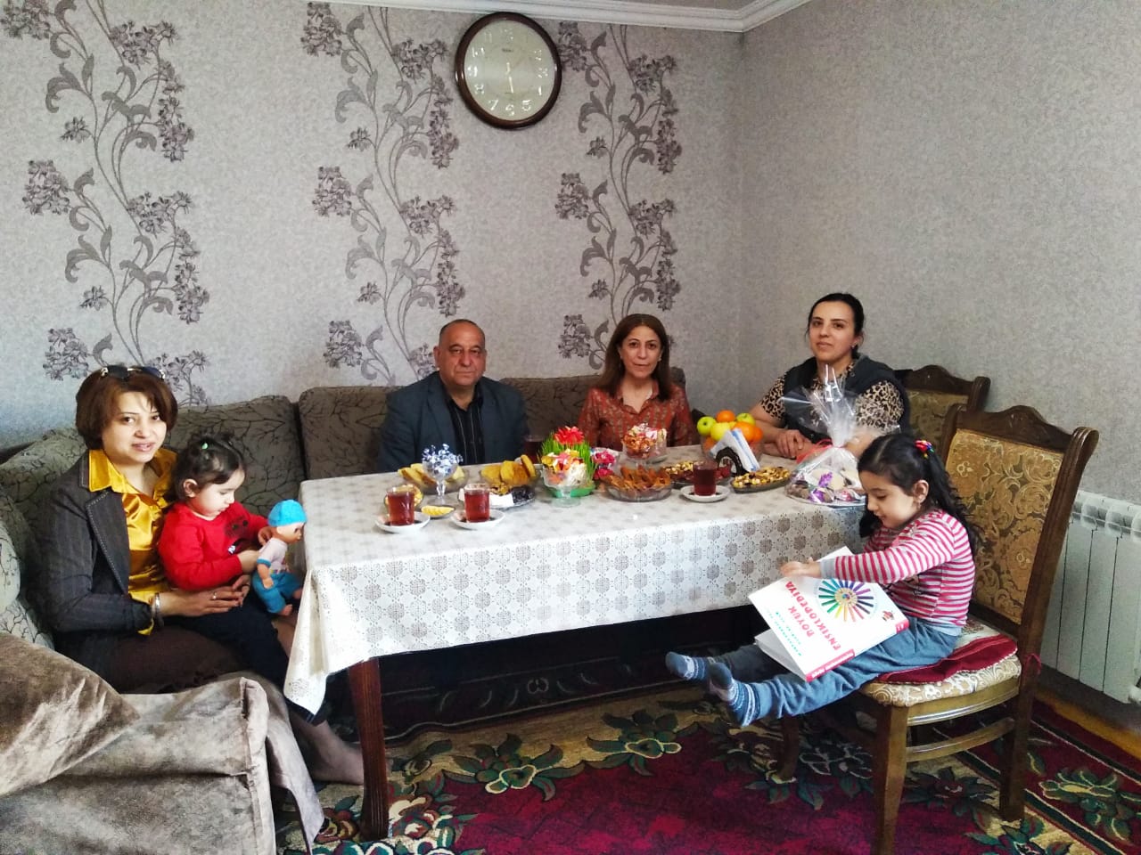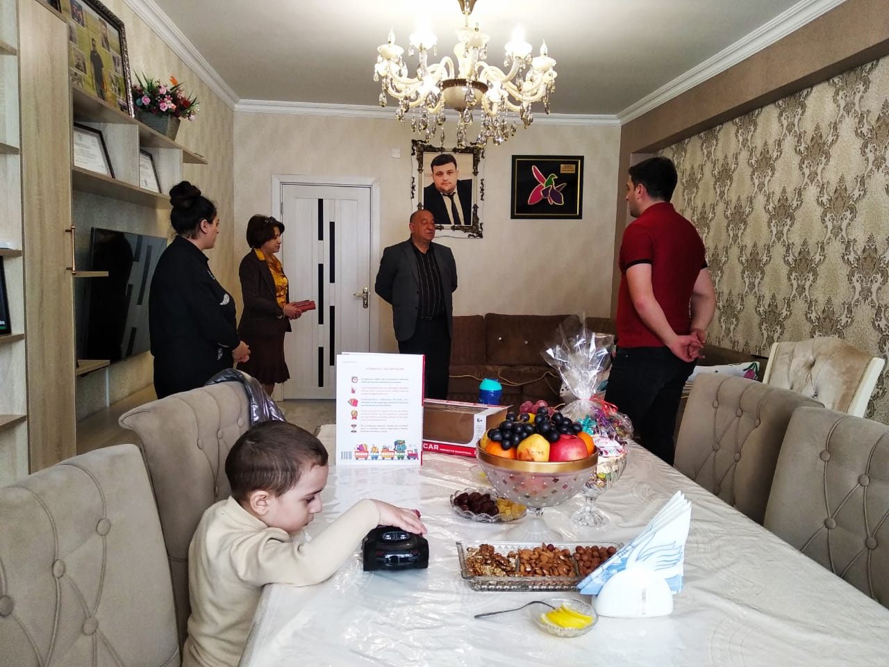 Uşaq şöbəsinin əməkdaşları onun oğlu Hüseynin 3 yaşı olması münasibətilə Corat bağları yaşayış massivindəki evdə olublar.