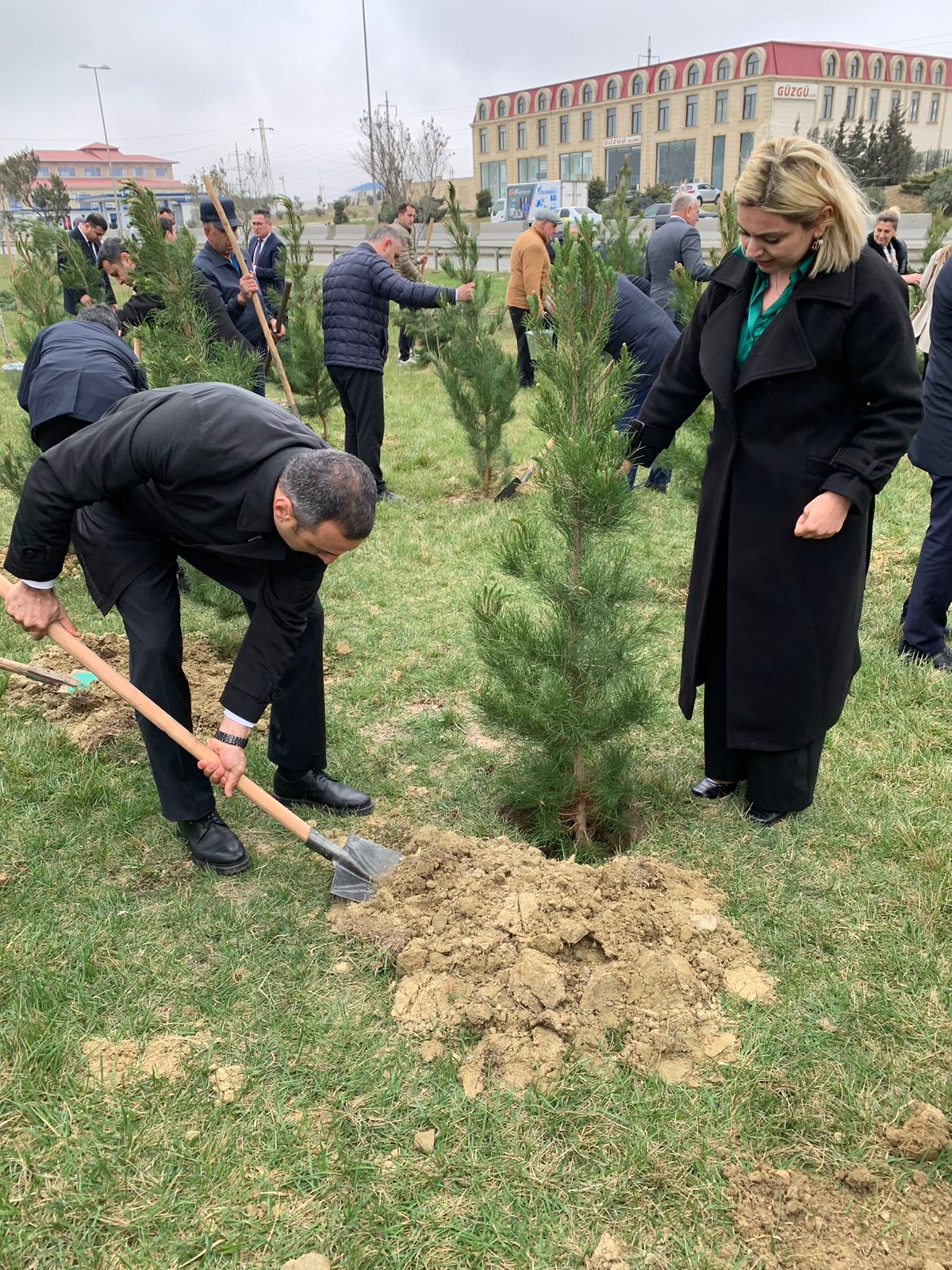 Azərbaycan xalqının ümummilli lideri Heydər Əliyevin anadan olmasının 100 illik yubileyi münasibətilə Abşeron rayonunda təşkil olunan silsilə tədbirlər çərçivəsində Ulu Öndərin unudulmaz xatirəsinə ağacəkmə aksiyası keçirilib. Tədbirdə Abşeron Rayon İcra Hakimiyyətinin başçısı Abdin Fərzəliyev, rayonun hüquq-mühafizə orqanlarının, idarə və təşkilatların rəhbərləri, Sumqayıt Regional Mədəniyyət İdarəsinin rəisi Rəşad Əliyev YAP Abşeron Rayon Təşkilatının sədri, şəhid ailələri və qazilər iştirak ediblər. Gənclərin və könüllülərin də fəal qatıldığı aksiyada 1000-ə yaxın ölkəmizin iqlim şəraitinə uyğun və dözümlü, dekorativ cəhətdən yaraşıqlı Eldar şamı və zeytun kimi həmişəyaşıl ağaclar əkilib. Əkilən hər bir ağacın küləkdən qorunması üçün bərkidilmə işləri həyata keçirilib, normal böyüməsi üçün mineral gübrələrdən və digər lazımi vasitələrdən istifadə edilib, yeni salınmış yaşıllıq zonasının daimi suvarılmasını təmin etmək məqsədilə suvarma şəbəkəsi qurulub.