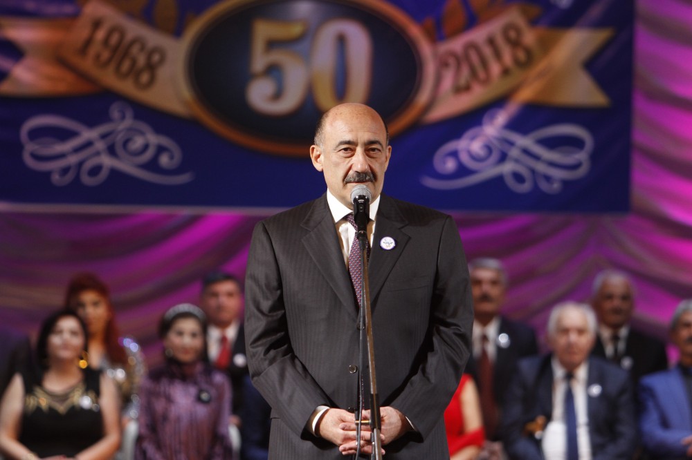 Mədəniyyət naziri Əbülfəs Qarayev çıxışına bu dəfə doğma teatrın səhnəsinə tamaşaçı kimi çıxmış kollektivə "Əziz teatr fədailəri" müraciətilə başladı. Nazir dedi ki, bu gün təkcə Sumqayıt üçün deyil, ölkənin mədəniyyət aləmi üçün böyük bayramdır: "Fəxr edirəm ki, 50 yaşlı Sumqayıt teatrı 146-cı mövsümünü yaşayan Azərbaycan teatrına böyük töhfələr verib, bu gün digər teatrlarda çalışan, çox tanınmış teatr insanları ilk addımlarını bu teatrın səhnəsində atıblar".