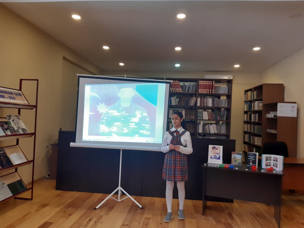 Sonra kitabxananın oxucularının ifasında şəhidlərə, vətənə həsr olunmuş şeirlərdən nümunələr dinlənilib, mövzu ilə bağlı videoçarx nümayiş olunub.