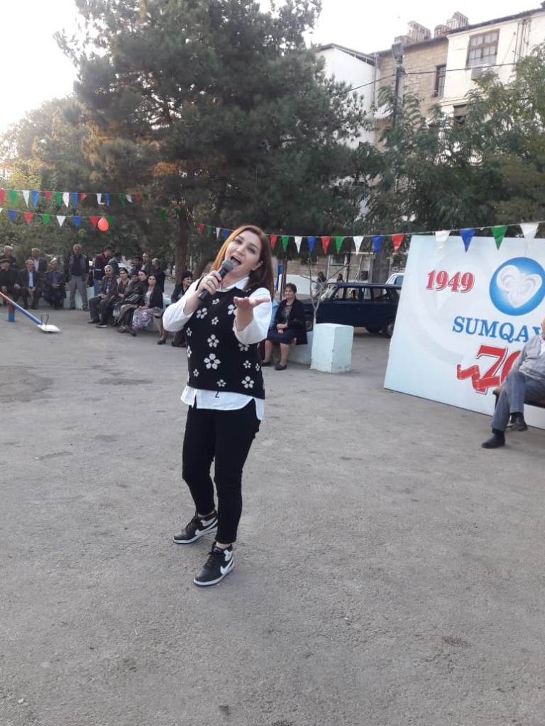 Sumqayıt şəhər İcra Hakimiyyətinin dəstəyi və Sumqayıt Regional Mədəniyyət İdarəsinin təşəbbüsü ilə Sumqayıt şəhərinin 70 illiyi münasibətilə Nəriman Nərimanov adına Mədəniyyət Mərkəzi filiallarla birgə şəhərin 14-cü məhəllə, 9-10-13-cü mikrarayonlarında və “Göyərçin” abidəsinin önündə konsert proqramı ilə çıxış ediblər.