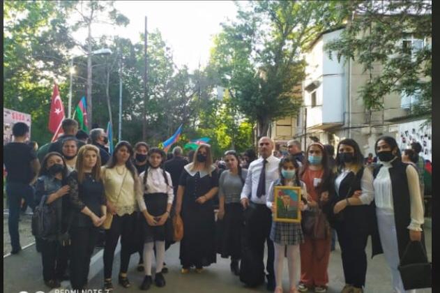 Mərasim iştirakçıları abidə önünə əklil və gül dəstələri qoyub, Şuşa şəhər Xanalılar uşaq musiq məktəbinin şagirdlərinin ifasında ədəbi-bədii kompozisiya nümayiş etdirilib.