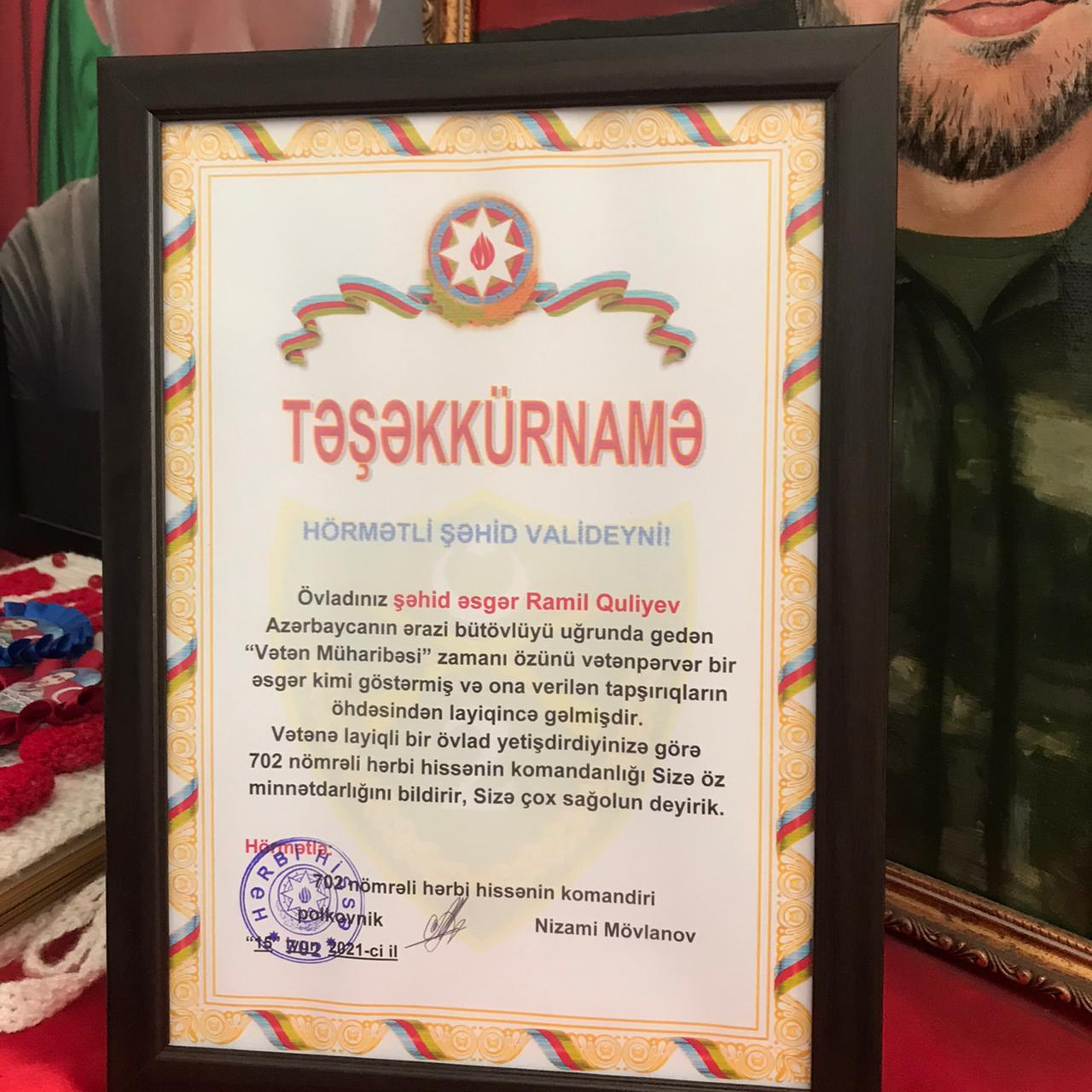 Şəhidin ailə üzvləri Ramil və onun kimi minlərlə digər Azərbaycan igidləri ilə fəxr edirlər.