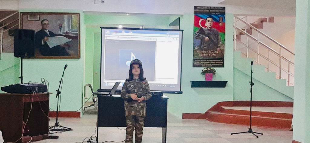 Daha sonra isə 44 günlük müharibəyə həsr olunan videoçarx təqdim olunub, “ Zəfərə aparan yol” adlı mühazirə iştirakçıların diqqətinə çatdırıb, tədbirlər şagirdlərin ifasında şeir və kompazisioyalarla davam etdirilib.