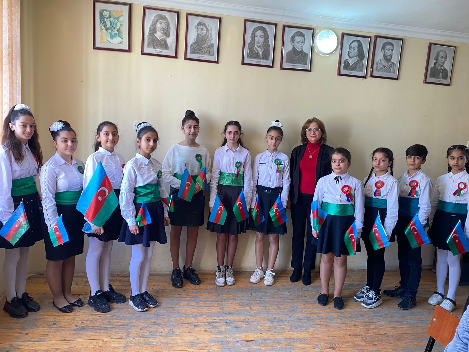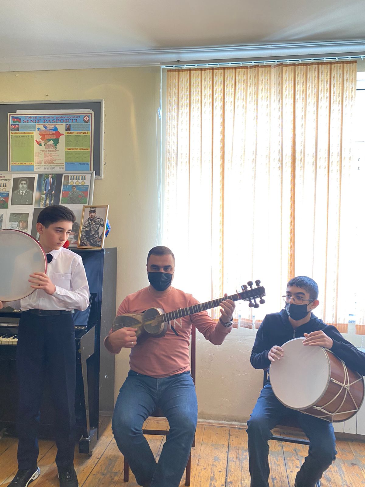 Sonra məktəbin müəllim və şagird heyəti də çıxış edərək, zəfər sevincini bölüşüblər. Daha sonra məktəbin şagird və müəllimlərinin İfasında “Azərbaycanım”, “Qarabağ”, “Azərbaycan oğluyam” “Simayi-şəms” zərb-muğamı səsləndirilib.